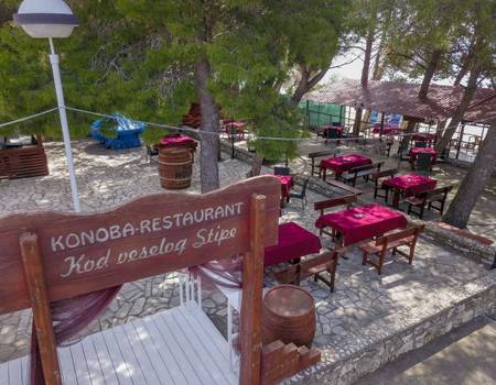 Decorated in a traditional style, the hotel is 4km from the centre of Trogir. Taxis can easily be arranged at reception, with a journey time of around 10 minutes. There is also a water taxi service, which is often the transport of choice for guests, as it takes 20 minutes one-way and costs approximately 5 euros per person for a return journey; cheaper than by car and a unique way to travel.