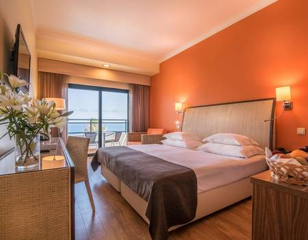 These double and twin rooms have their own balcony overlooking the garden and with a side view of the sea. Each room has a double or twin bed, a TV, telephone, minibar and safe, as well as air conditioning and a separate bathroom with tub and hair dryer.