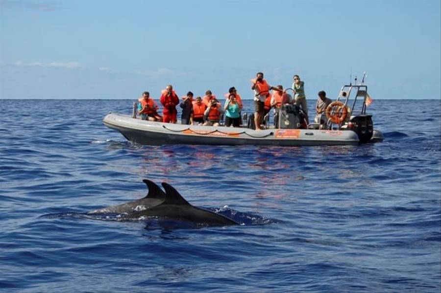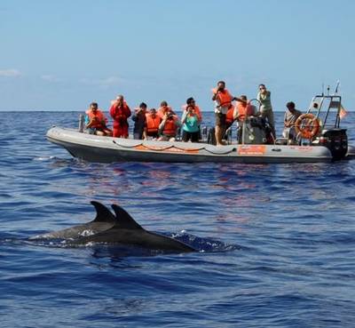 You will head out via RIB (Rigid-hulled Inflatable Boat) in search of your aquatic friends. Your onboard marine biologist will tell you about the marine life of the islands while your captain searches for whales and dolphins. The waters that surround the islands are rich with life and throughout the year, 28 different species can be found, including: Atlantic-spotted, bottlenose, risso's and stripped dolphins, as well as pilot, bryde and fin whales.